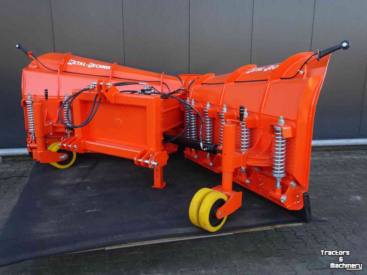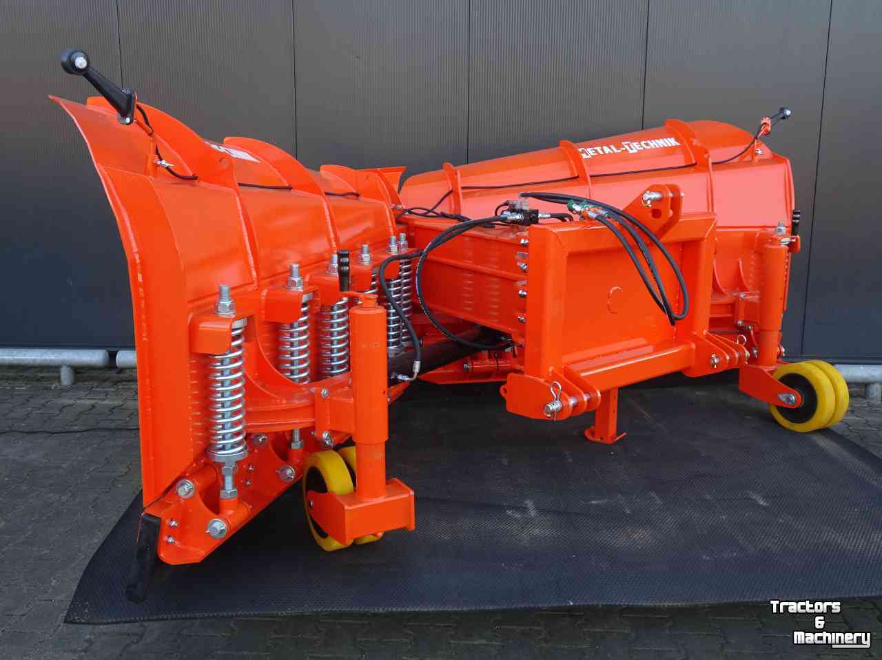 Deze sneeuwschuif kan zowel helemaal naar rechts / of naar links schuiven, of als ploeg of als V naar voren om alles weg te schuiven