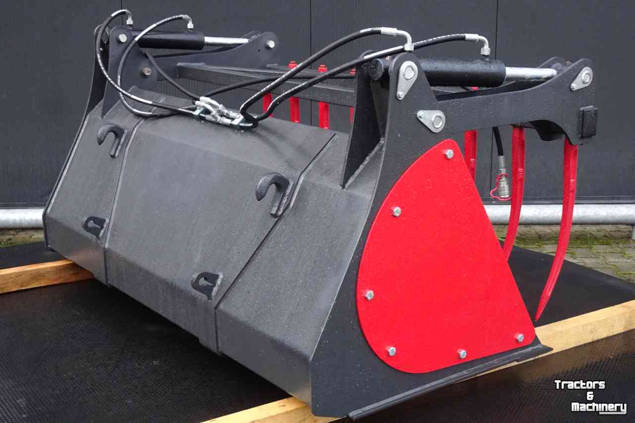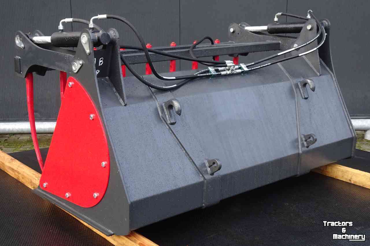 Dichte mestbakken met hydraulische bovenklem met verwisselbare tanden.
